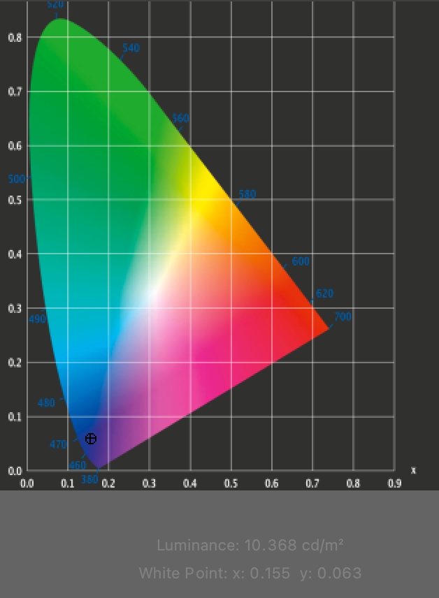 - Measurement device: i1Display pro with appropriate spectral corrections
