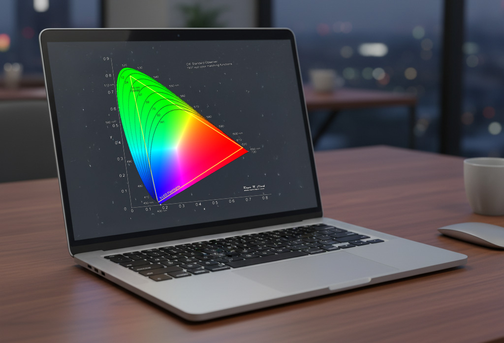 - Calibrated display matching P3 color space, gamma 2.4.
